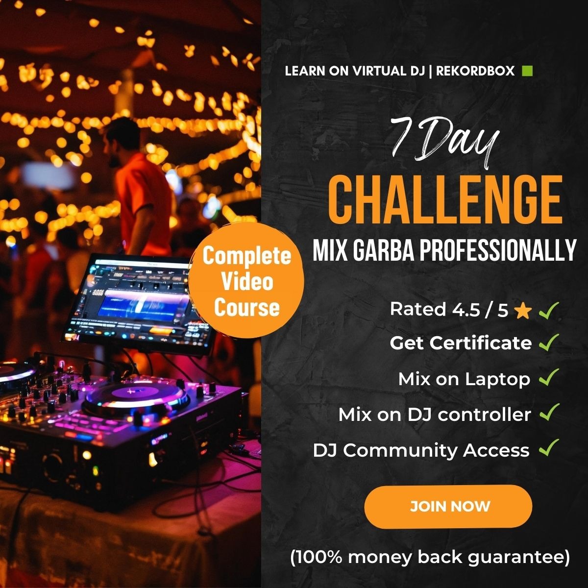 Begin your Garba transitions with manual beat matching and smooth crossfader fades. Optimize your Virtual DJ, Rekordbox, or other software for seamless Garba mixing.
